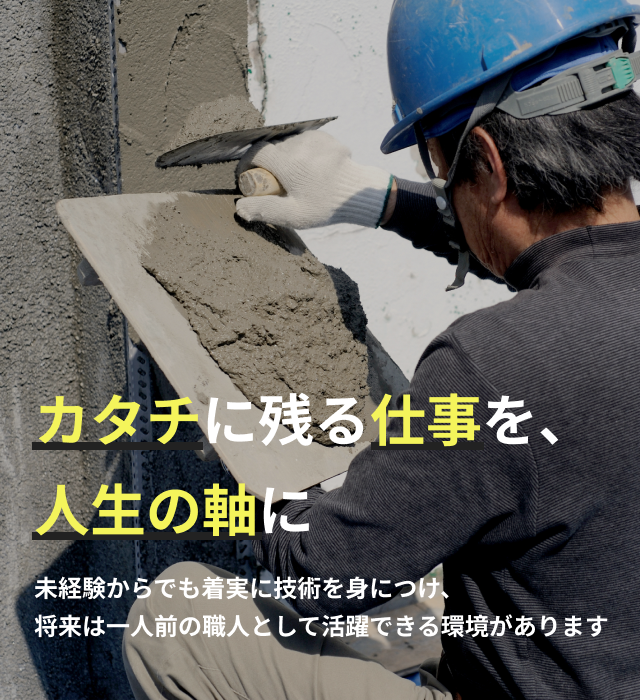 私たちの使命は、建物の品質を支える確かな施工を提供すること。そしてもう一つは、技術を未来へつなぐことです。左官という仕事の魅力を次世代へ伝え、若い力が安心して挑戦できる環境を整える。一人ひとりの成長が、会社の成長につながる。 その積み重ねが、地域社会への貢献につながると考えています。